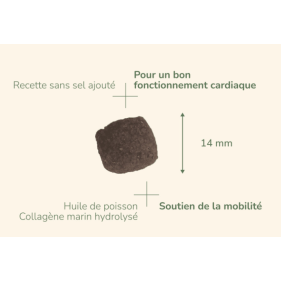 Hygiène bucco-dentaire :L’incorporation d’algues et de fibres et une forme adaptée de croquettes permettent de limiter la fixation du tartre.